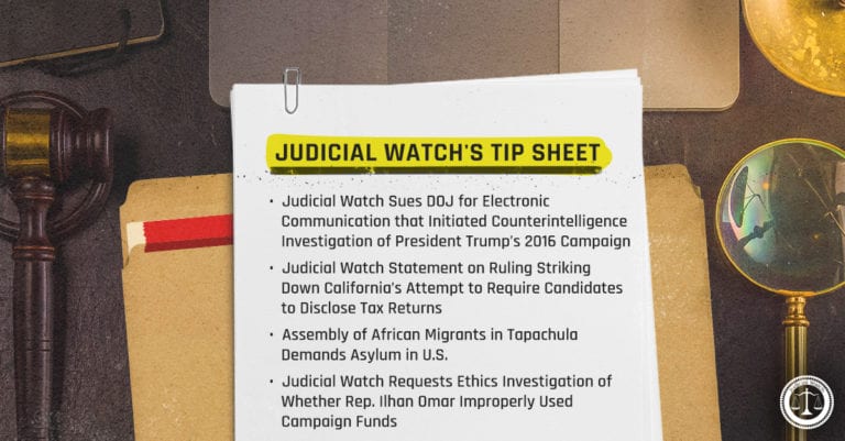 Judicial Watch Sues DOJ for Electronic Communication that Initiated Counterintelligence Investigation of President Trump’s 2016 Campaign- In March 2018, based upon the information ...